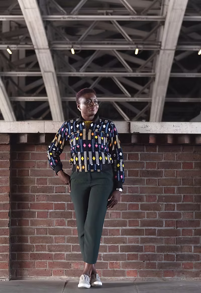 Our Black Geo Print Cropped jacket is a statement piece for any wardrobe. Its striking geometric print, featuring diamond shapes adds a unique and eye-catching element. The contrasting plain black at the back provides a sophisticated balance. Perfect for layering, this versatile jacket can be effortlessly integrated into a variety of outfits. Pair it with jeans and a T-shirt for a casual look, or dress it up with tailored trousers and a shirt for a more refined ensemble.