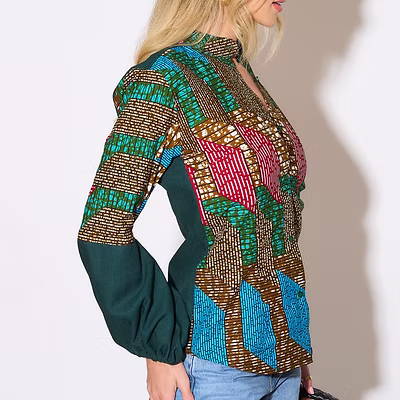 Be the first to review “Green Geo Print Puff Sleeve Top”